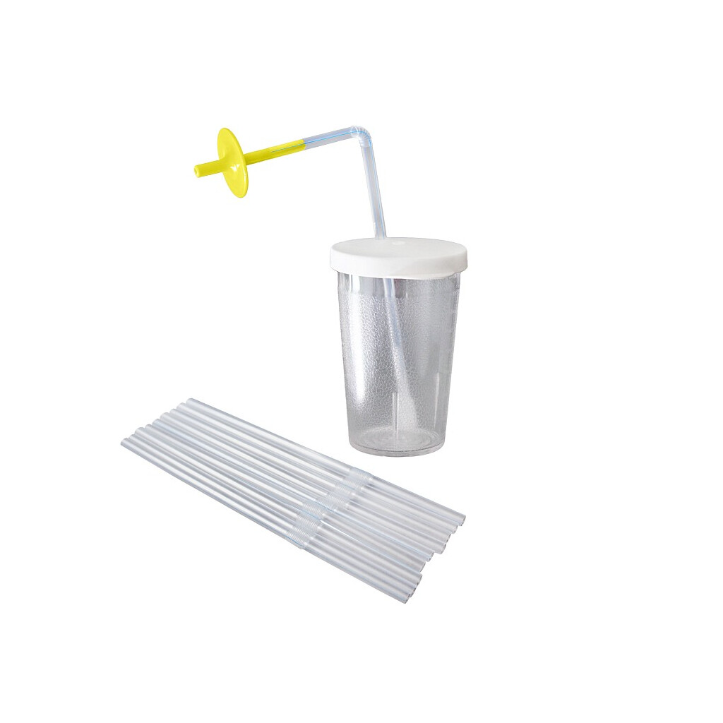 Med koppen kan man selv suge væsken ind via sugerøret eller pumpe væsken ind i sugerøret. Det sker via det fleksible låg. Du skal blot lukke hullet i låget med fingeren, og ved at trykke på låget pumpes væsken ind i sugerøret stykke for stykke.
