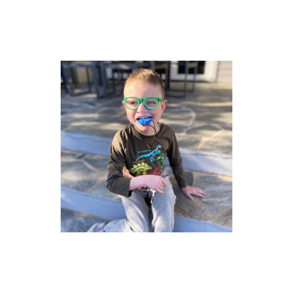 Opmærksomhed: Dette produkt er ikke et legetøj. Selvom disse tyggeredskaber er robuste og holdbare, er intet tyggeredskab uforgængeligt. På grund af den tilsigtede brug kan der forventes tegn på slitage. Hold altid øje med tyggeartiklen, tjek den regelmæssigt, og udskift den om nødvendigt, hvis den viser tegn på slitage og nedslidning. Lukningen og snoren er ikke egnet til at tygge på. Indeholder små dele, der kan udgøre en kvælningsfare