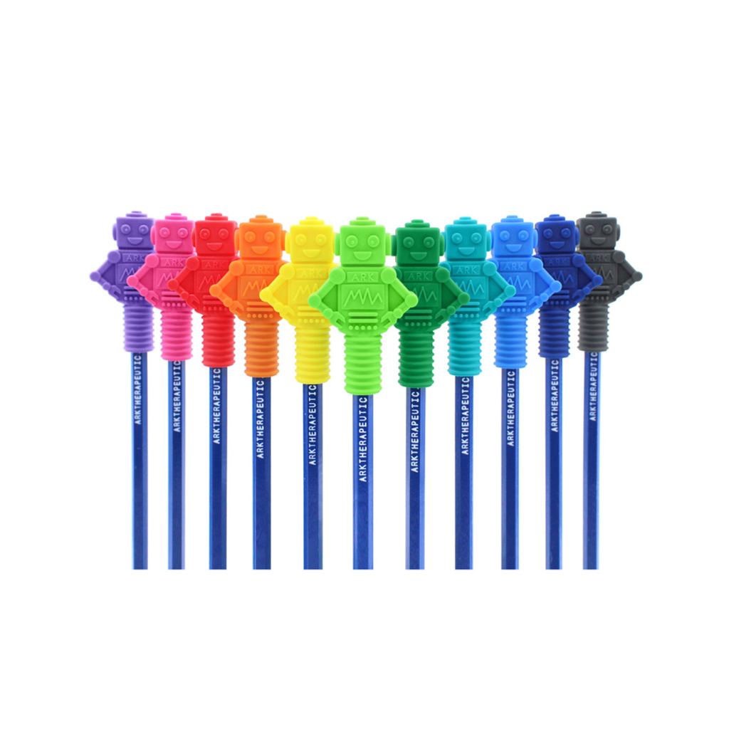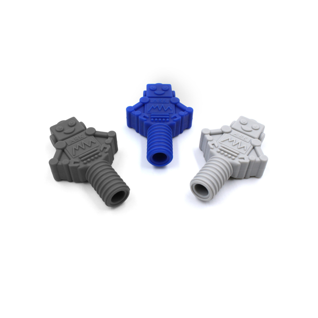 RoboChew-blyanttop er en alsidig løsning til alle, der har behov for at tygge. Med en hul ende, der passer perfekt over enden af en blyant, og en fast tyggeende er denne robottop ideel til tyggebehov. Den har mange taktile riller og ujævnheder, der giver yderligere sensorisk input gennem tekstur for at understøtte følesansen.