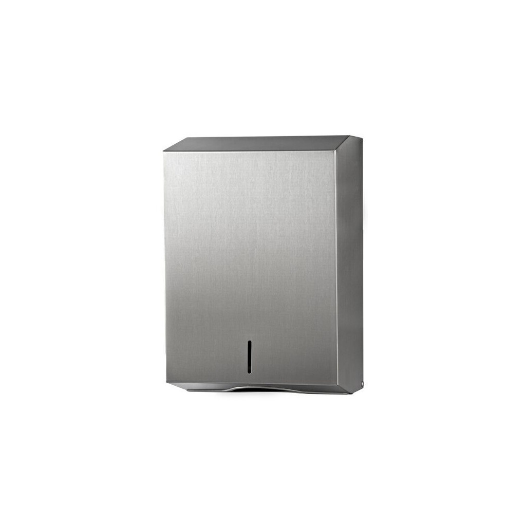 Dispenseren til foldede håndklæder er velegnet til alle standardfoldede håndklæder på markedet. Den kan fyldes med ZZ-foldede, lagdelte og mellemfoldede håndklæder.
