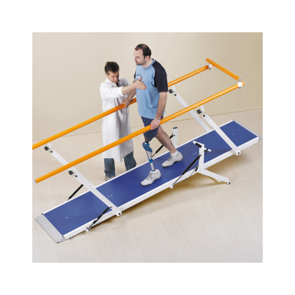 Dette gangtræningssystem muliggør træning på en fleksibelt justerbar hældningsplatform – ideel til at fremme balance, kropsholdning og motorisk stabilitet. Den robuste konstruktion i høj kvalitet med en træningslængde på 3 m, højde- og breddejusterbare håndlister samt et modulopbygget design sikrer en tryg og individuelt tilpasset gangtræning, målrettet voksne med nedsat mobilitet.