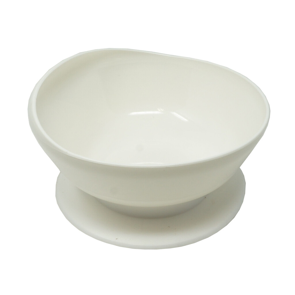 Ideel til personer med begrænset håndbevægelse. En sugekop sørger for, at tallerkenen står sikkert og ikke glider. Den indadskrånende kant gør det nemt at samle maden op med en gaffel ellerske. Rengøring : Skålen tåler opvaskemaskine - fjern sugekoppen på forhånd og rengør den i hånden, højde ca. 6 cm.