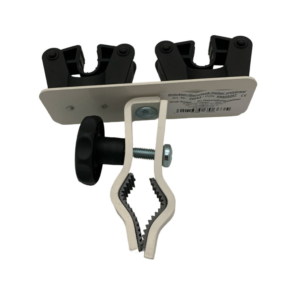 Denne stokkeholder kan takket være sin roterende plade fastgøres til både vandrette og lodrette rør med en diameter på 20 til 32 mm. Således kan den fleksibelt monteres på senge, bordben, kørestole eller andre egnede rør, hvilket gør den til en alsidigt anvendelig følgesvend i hverdagen.