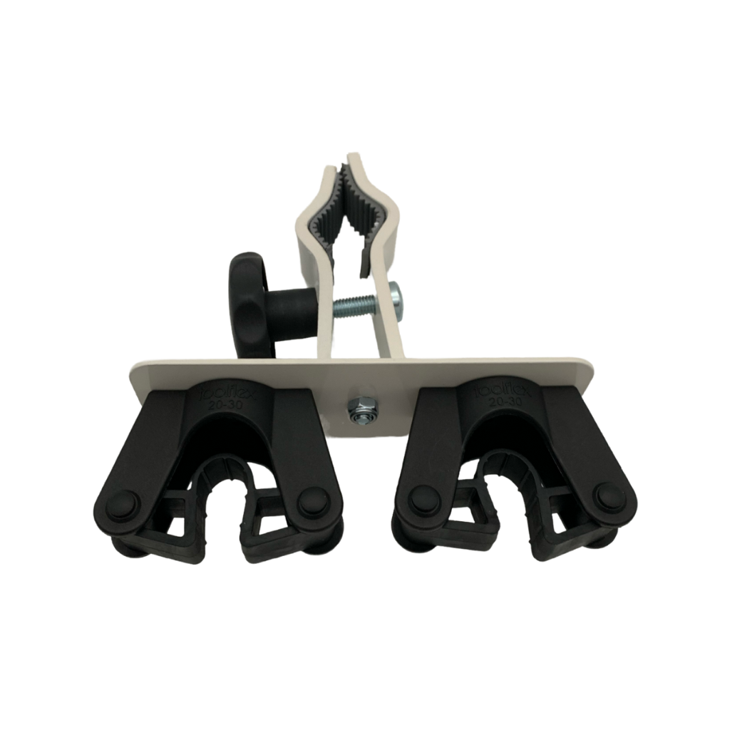 Toolflex-holderne gør det muligt at fastgøre stokken nemt med minimal kraftanstrengelse. Takket være de fleksible gummigreb, som understøtter trykbevægelsen (snap-mekanisme), kan selv personer med ringe håndkraft bruge holderen problemfrit. Stokken kan nemt klemmes fast og lige så nemt tages ud igen.