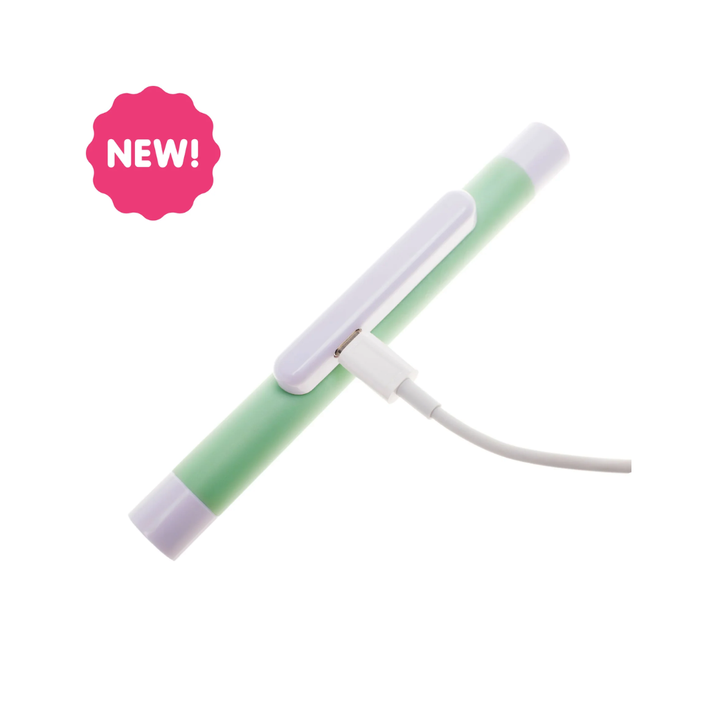 Den håndholdte enhed har et ergonomisk formet kabinet med integreret, genopladeligt lithiumbatteri. Tilbehørsdelen er fremstillet af blødt materiale uden latex, BPA, bly og ftalater.