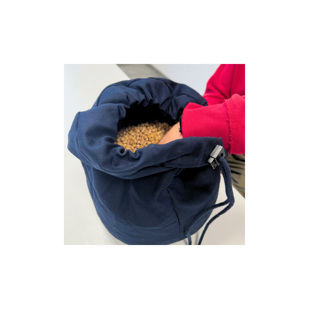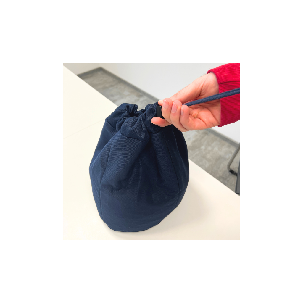 Takket være det specielle design med fire indsyede støttereb kan Theralino®-posen nemt placeres på skødet eller bordet og giver tilstrækkelig plads til det ønskede materiale. Støtterebene sikrer stabilitet uden at være stive.
